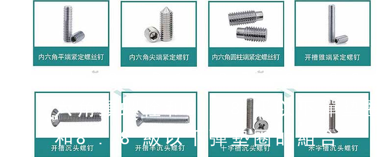 1.機螺釘 2.自攻螺釘 3.鉆尾螺釘 4.墻板釘 5.纖維板釘 6.木螺釘7.六角木螺釘 8.不脫出螺釘 9.組合螺釘 10.微型螺釘 11.家具螺釘 12.電子螺釘頭型:1.六角頭(hexagon head) 2.六角頭法蘭面(hexagon head with flange) 3. 高強度螺栓在生產上全稱叫高強度螺栓連接副,一般不簡稱為高強螺栓。 根據安裝特點分為:大六角頭螺栓和扭剪型螺栓。其中扭剪型只在10.9級中使用。根據高強度螺栓的性能等級分為:8.8級和10.9級。其中8.8級僅有大六角