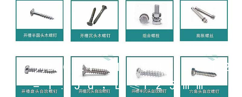 例如,效能等級4.6級的螺栓,其含義是:1、螺栓材質公稱抗拉強度達400MPa級;2、螺栓材質的屈強比值為0.6;3、螺栓材質的公稱屈服強度達400×0.6=240MPa級效能等級10.9級高強度螺栓,其材料經過熱處理后,能達到:1、螺栓材質公稱抗拉強度達10 產品系列 產品詳細分類 六角螺栓 (1)外六角全牙:GB5783/DIN933 (2)外六角半牙;GB5782/DIN931(3)B級法蘭面六角螺栓:GB5787(4)活節螺栓:GB798/DIN444 (5)手工焊用焊接螺栓:GB902 方頸螺栓 (