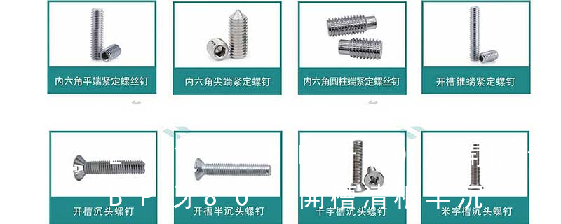 1)開槽普通螺釘多用于較小零件的連接。它有盤頭螺釘、圓柱頭螺釘、半沉頭螺釘和沉頭螺釘。盤頭螺釘和圓柱頭螺釘?shù)尼旑^強度較高,瑁在普通的部件連接上;半沉頭螺釘?shù)念^部呈弧形,安裝后它的頂端略外露,且美觀光滑,一般用于儀器或精密
